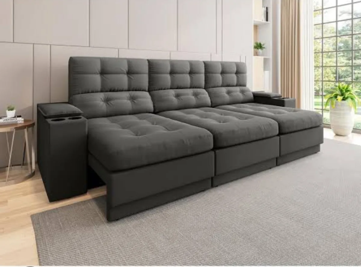 Sofá retrátil cinza